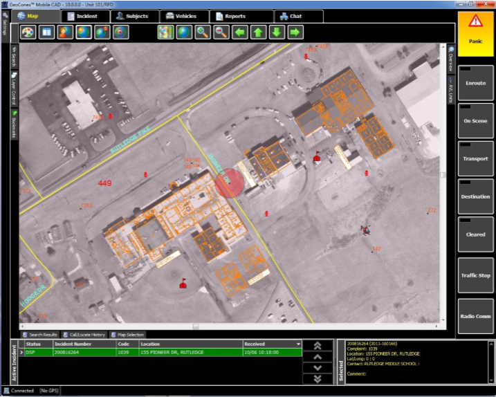 GeoConex® Mobile CAD—NG911 Ready—is a comprehensive mobile computer-aided dispatching tool that both dispatchers and users in the field can use for optimum performance that provides real time information and communication capabilities. With GeoConex® Mobile CAD, personnel working in the field are able to improve response time and accuracy of dispatch location with reduced radio traffic because the user has all the information at his fingertips. The mobile user has access to detailed maps, GPS location, NCIC query, incident details, subjects, vehicle information and capabilities of private chat. GeoConex® Mobile CAD is built on the Next Generation CAD Engine and uses state of the art technology to ensure communications back to the 9-1-1 center are encrypted and secure.