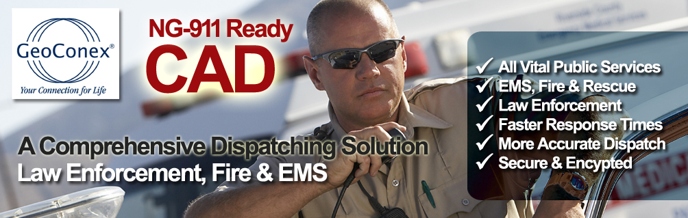 GeoConex® NG911 (Next Generation 911) Computer Aided Dispatch (CAD) is a comprehensive dispatching tool that has options for use by both dispatchers and supervisory personnel to give optimum dispatch performance.